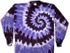 A different look in tie dye is this long sleeve shirt which combines an interesting set of purples. A striking shirt in an offset spiral design which makes a nice tie dye wardrobe addition.