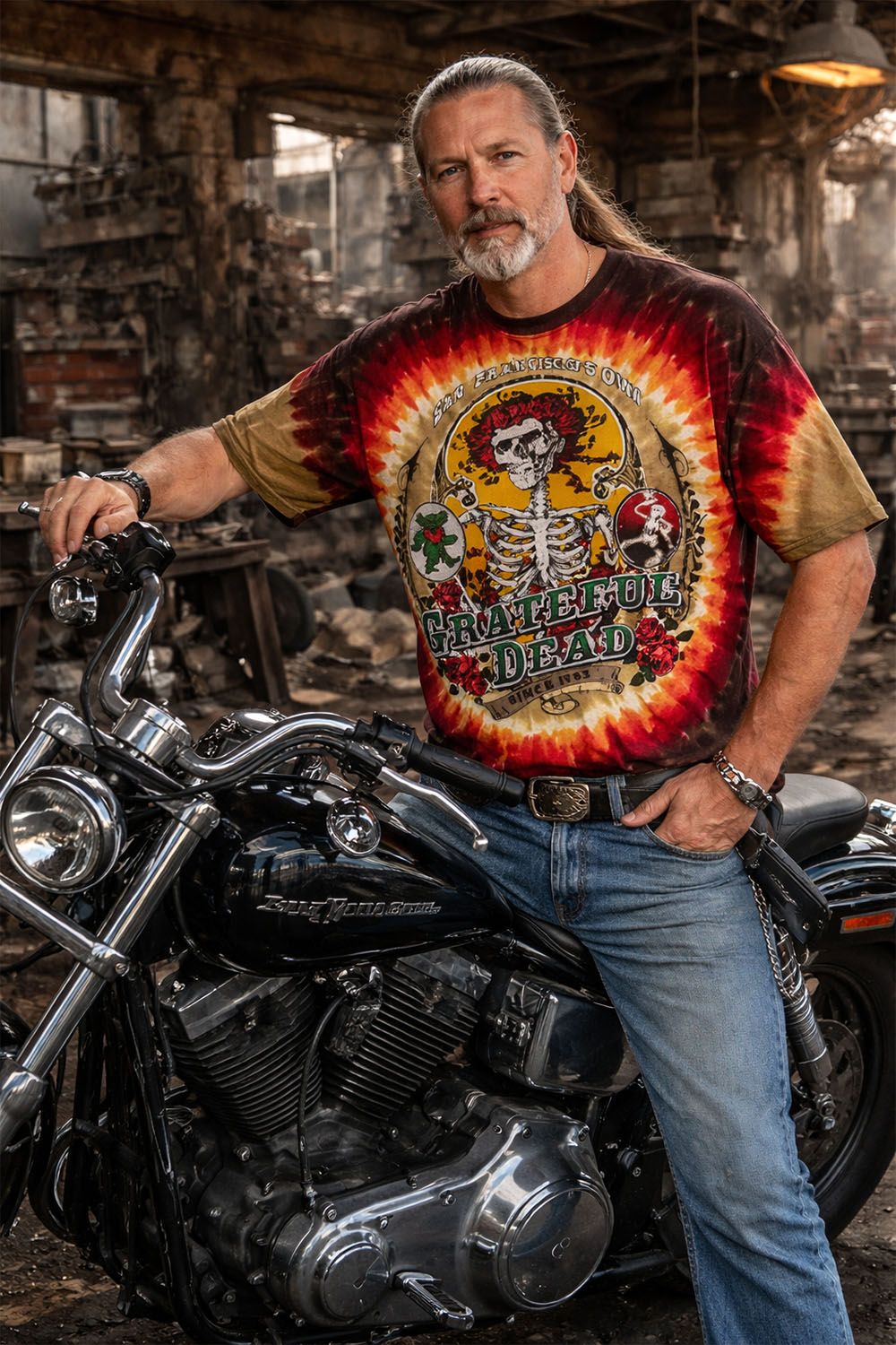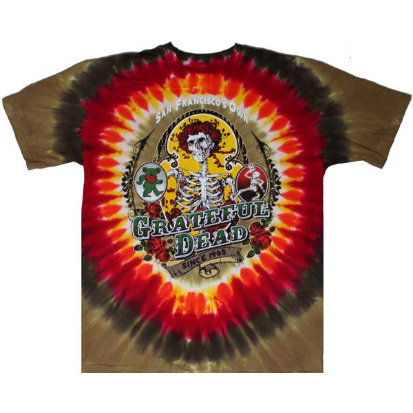 This Grateful Dead tie dye t-shirt is dyed and screen printed in the popular Bay Area Beloved pattern.